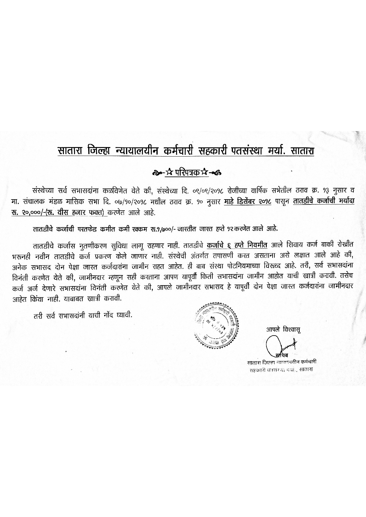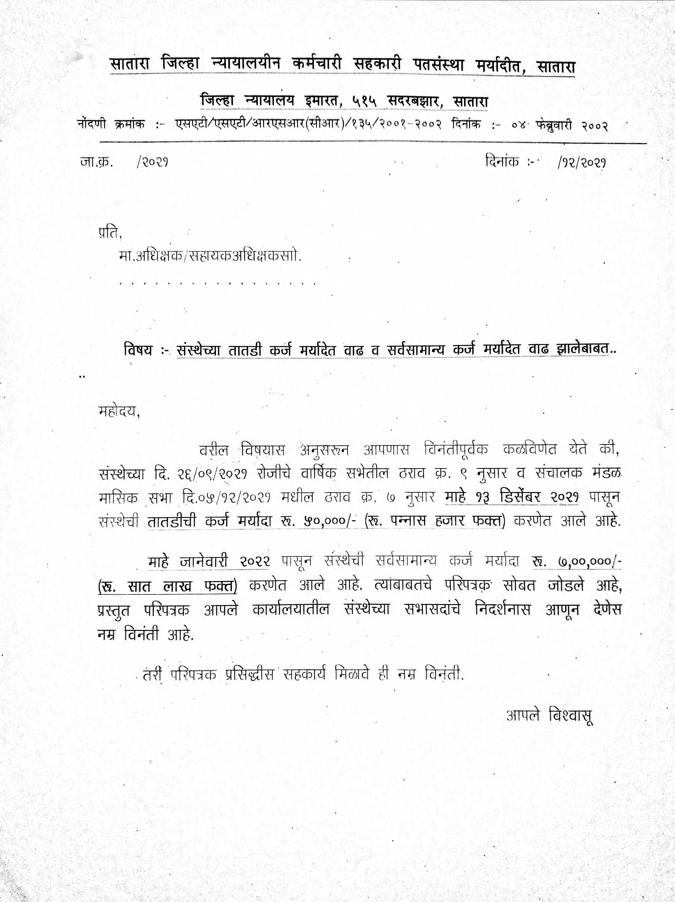 तातडीचे कर्ज मर्यादा वाढ २४०००/-