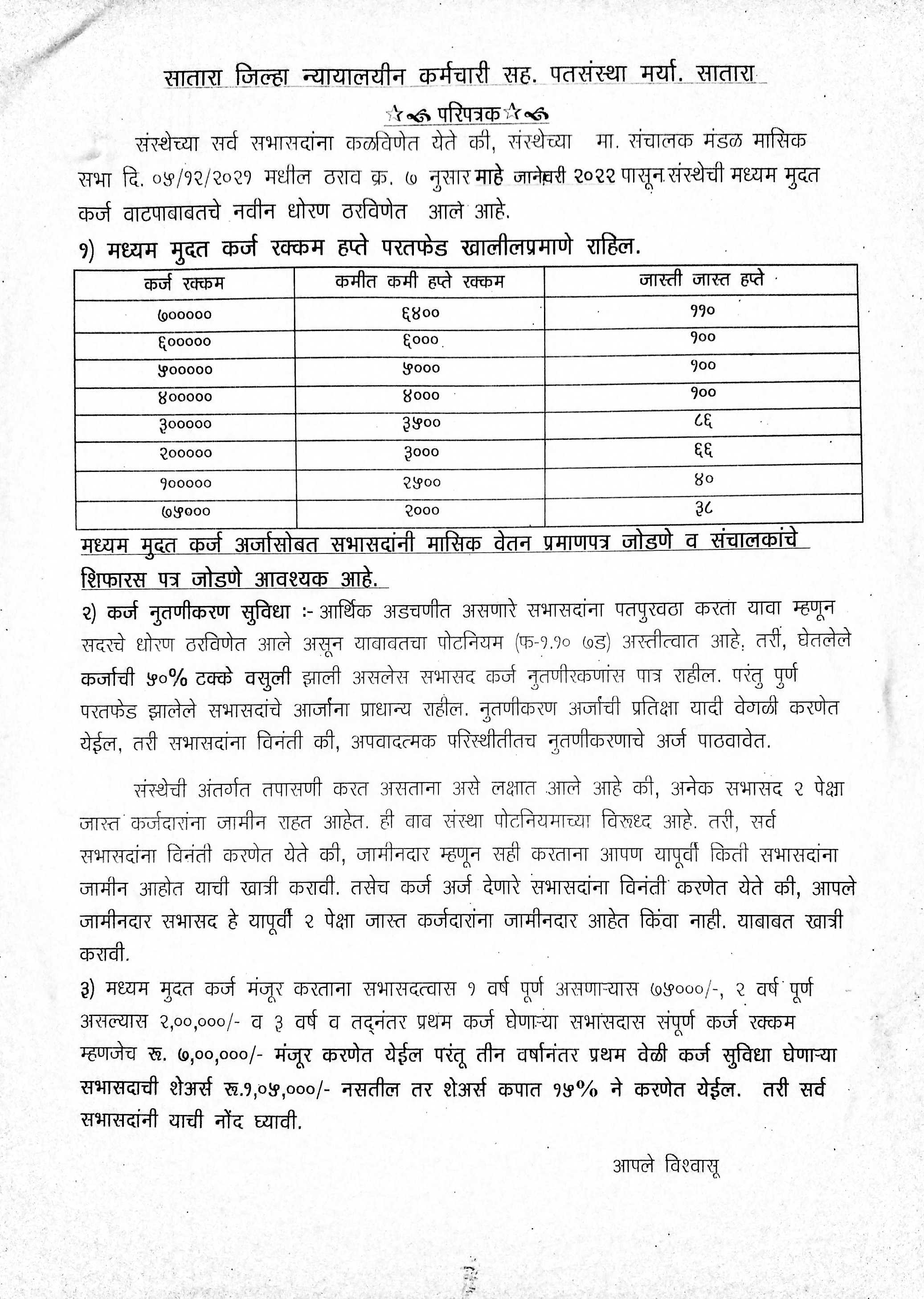 मध्यम मुदत कर्ज मर्यादेत रु.५,००,०००/- पर्यंत वाढ ..